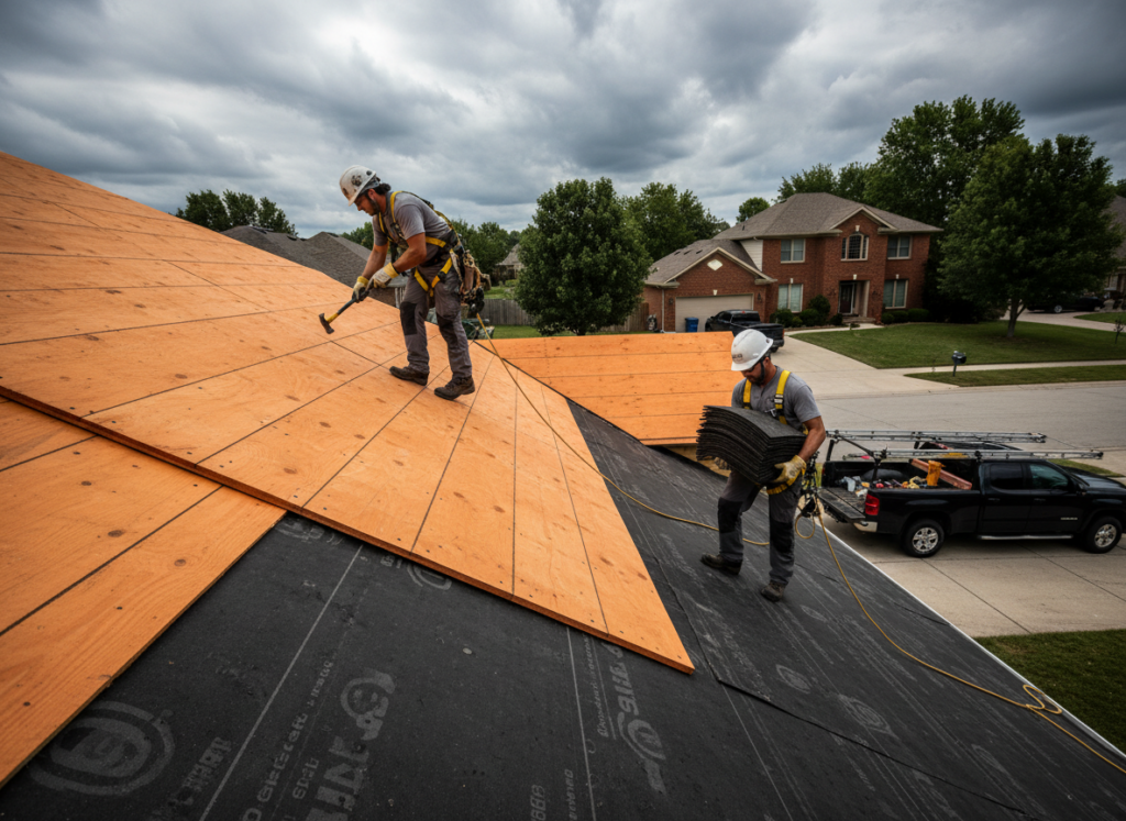 Our crew removes the old roofing materials, addresses qualifying underlying issues discovered during the replacement process, and installs your new roofing system with close attention to workmanship and jobsite care. We work efficiently while keeping the project organized and minimizing disruption to your property.
